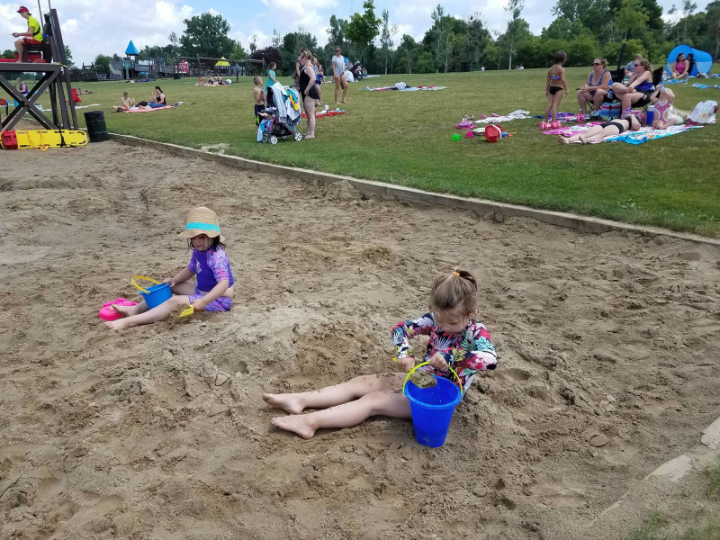 Along with the pavilions and grills, there’s also a special covered area with picnic tables located by the splash pad and beach.